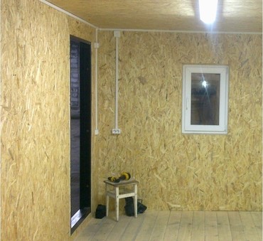 ОСБ плита внутри, электрика, линолеум.